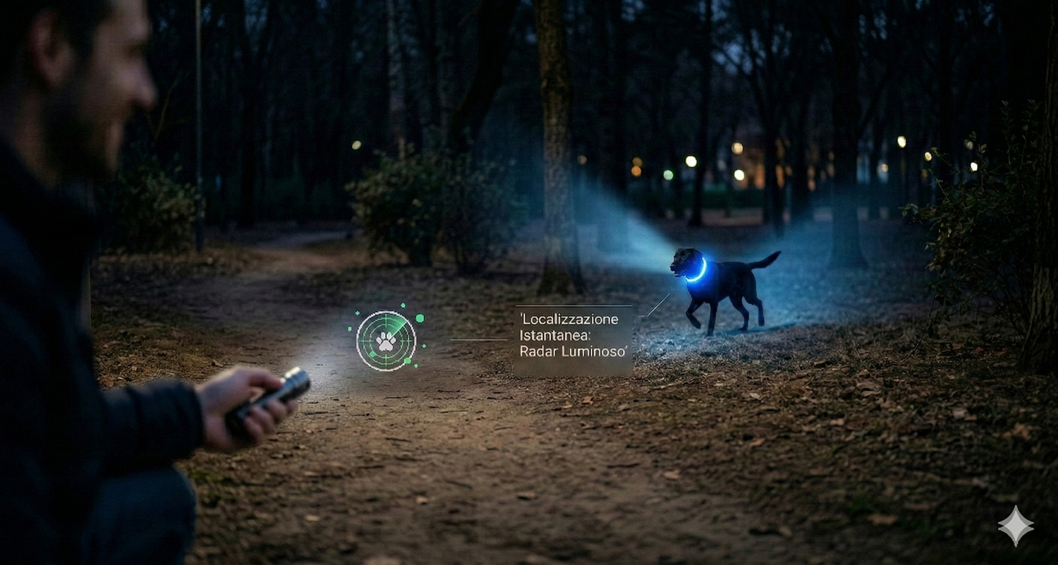 Hai un cane che ama esplorare il bosco o correre nel parco di sera? NeonPulse elimina l'ansia di "perdere il contatto visivo". Grazie ai suoi LED ad alta penetrazione, puoi individuare la sua sagoma anche tra i cespugli più fitti o a grande distanza. Goditi la bellezza di vederlo correre felice e libero, mantenendo sempre la certezza matematica di sapere esattamente dove si trova.