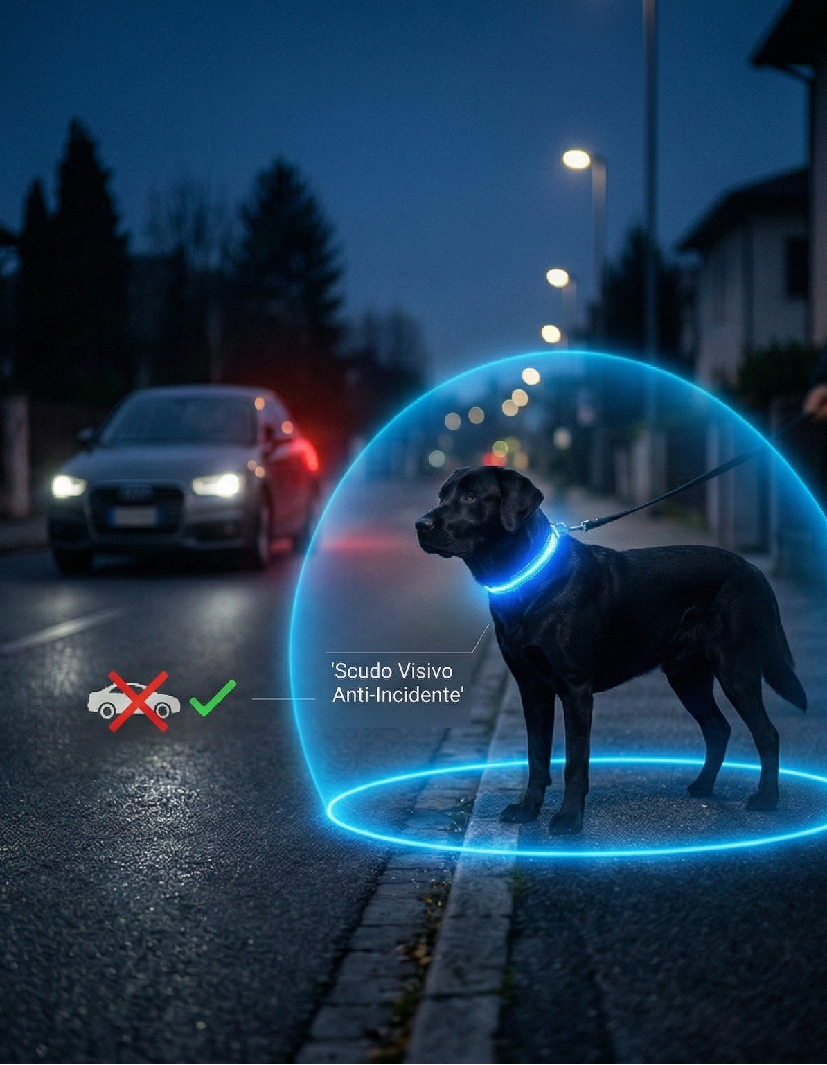 Camminare sul ciglio della strada al crepuscolo non sarà più una fonte di stress. NeonPulse crea una zona di visibilità attiva che segnala la posizione del tuo cane a centinaia di metri di distanza. È molto più di un collare: è un segnale salvavita che garantisce agli automobilisti il tempo necessario per vedervi e rallentare, proteggendo la vita del tuo fedele compagno in ogni condizione di luce.